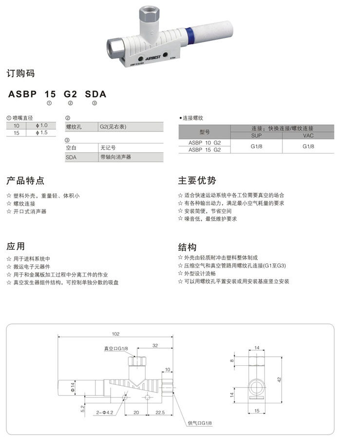 ASBP10G2SDA,Airbest,airbest,基本型真空发生器,Vacuum generator,ASBP系列