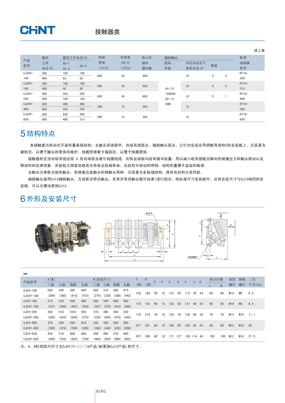 产品标题:CJ24-250/2.3 线圈 380V 50Hz,CJ24系列交流接触器,正泰集团CHINT国内一级代理